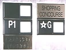 The elevator goes from the single parking level to the single floor with stores. There are two buttons, parking level (P1) and ground (G). (The third button does nothing as far as I can tell.) For such a simple device, it has many human factors design errors. First, the buttons are labeled incorrectly. "G" is for "garage" (to me) which means parking, so I often errantly press G get to the parking level. Why label the other button P1 if there is only one parking level? Moreover, the placards are not highly conspicuous, and they don't match the buttons. "Shopping Concourse" translates to the "G" button and "Covered Parking" to "P1?" There is no connection between the signs and the buttons.