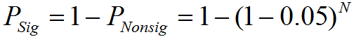 In addition, statistical tests are amenable to many types of manipulation that allow researchers to torture the data into significance. Studies with a large number of variables, for example, lend themselves to "p-hacking," making multiple comparisons on the same set of data without a statistical correction. The probability of obtaining at least one significant effect (Psig) rather than a nonsignificant effect (PNonsig) at the p<=0.05 level given N comparisons is: